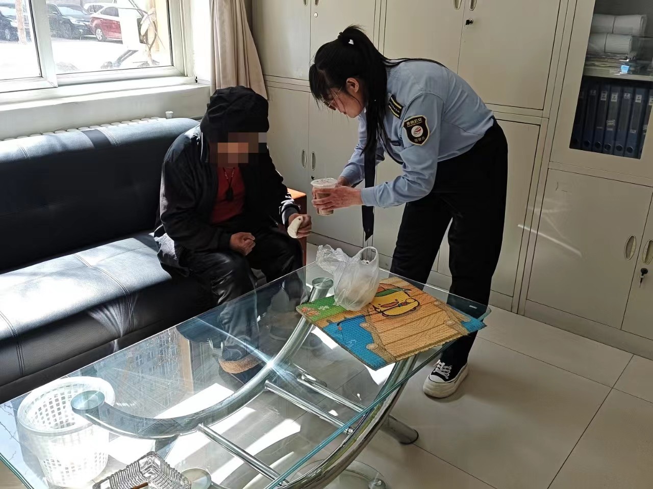 “各位乘客,终点站邓家窑桥北到了,请您带好随时物品,准备下车……”,3月29日10点30分,813路公交车厢正在播报到站语音,乘客陆续下车,但一名身穿黑色棉衣的老人仍在座位一动不动,这一情况引起了驾驶员卢迎的注意,随即她走出驾驶室,上前询问情况。