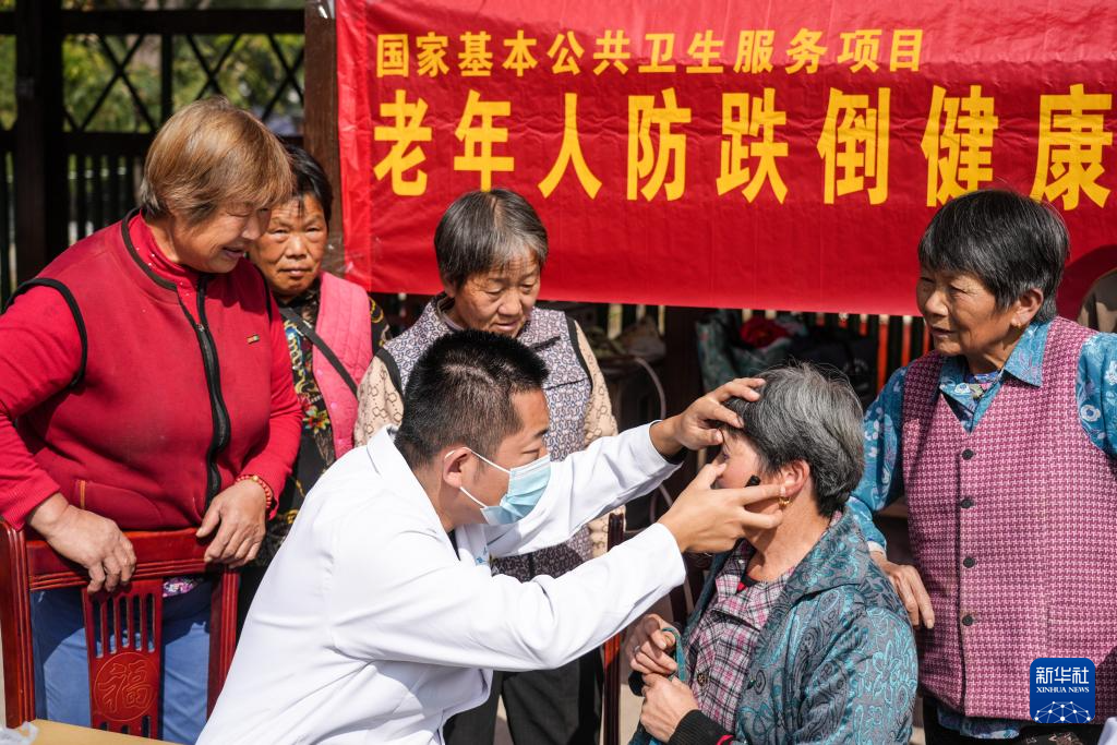 10月10日,博山区池上中心卫生院医生在池埠村长者食堂为老人义诊。