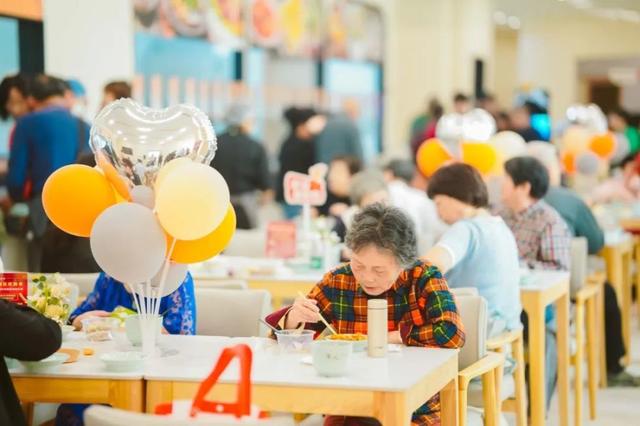 饭点还没到,社区长者食堂已经人头攒动,老人们开始有序排队品尝美食。冷菜有糟带鱼、百香果鸡爪等,热菜有本帮酱鸭、糖醋小排、药膳乌鸡汤、手撕鸡等,点心有重阳糕、蟹壳黄、蛋挞、萌小粽等。“菜品很多、很丰盛,荤素搭配,看着很有食欲。”看着老人们吃着美食,聊着家常,脸上洋溢着灿烂的笑容,陈蓓娜觉得很欣慰,“我们还特别设置了老字号、老品牌进社区专柜,比如沈大成、新雅、红房子、功德林、松鹤楼的特色产品,基本都是现制现售,让老年人可以当场新鲜享用。”