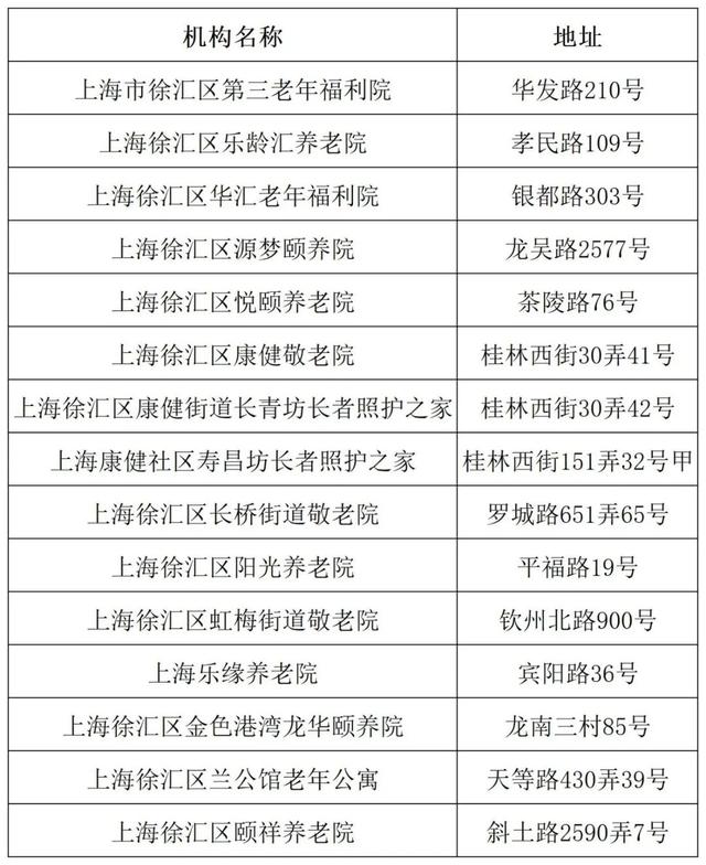 徐汇区春节短托养老机构清单