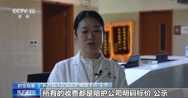 长兴县人民医院护理部主任 王芳:以前就是因为一些散户,所以说这个价格是没有规范性。现在是更合理、更规范,所有的收费都是陪护公司明码标价、公示,我们医护人员进行监督。
