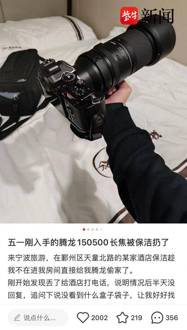 新购6500元相机镜头在酒店“消失”?酒店回应:保洁将包装当空盒丢弃,警方已介入调查安保顺家政138