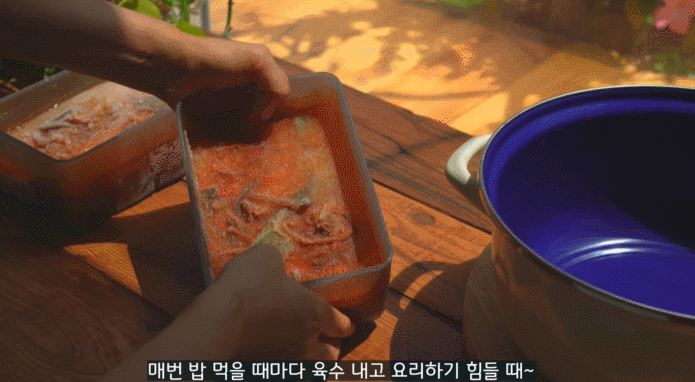Searon把精心熬制的高汤,用保鲜盒分装后冷冻起来,用的时候不需要解冻,直接倒在锅里加热就行。
