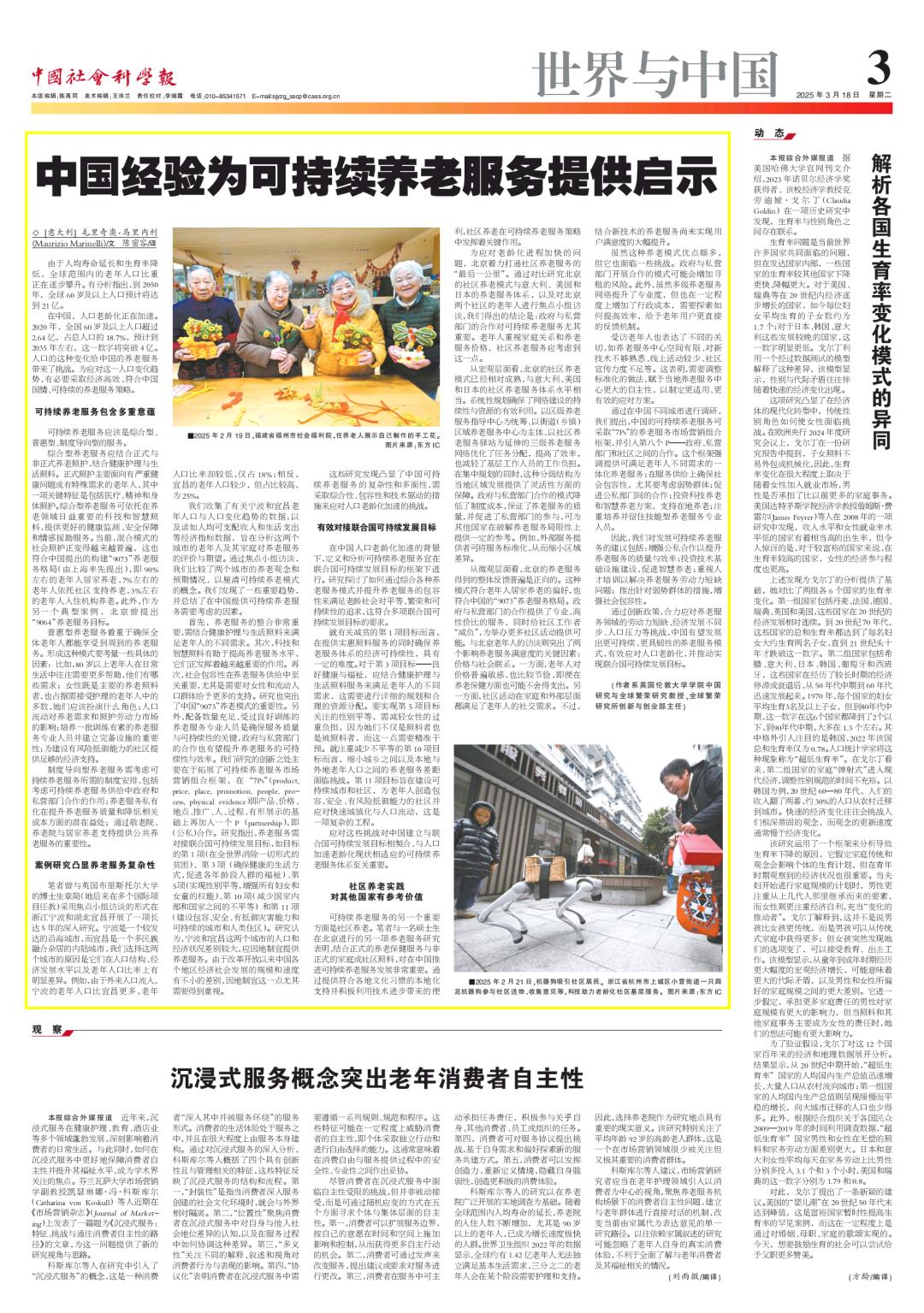 原标题:《世界与中国 | 中国经验为可持续养老服务提供启示》