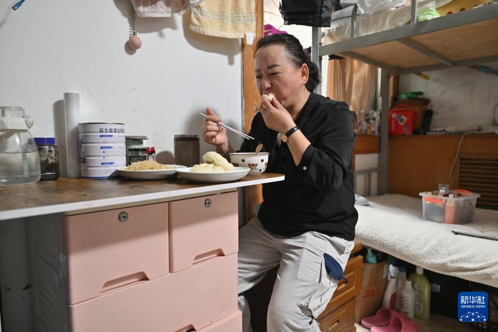 4月29日,范汝英在北京市丰台区的租住地吃早饭。新华社记者 才扬 摄