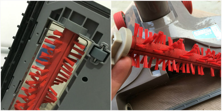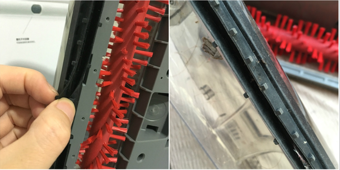 地刷里面的滚刷在工作时转动非常快,清理也非常方便,取出安装都简单,这个地方要定期及时清理,比如一些毛发等会有缠绕,要经常取出清理呢。上面是两张工作前后的对比照~
