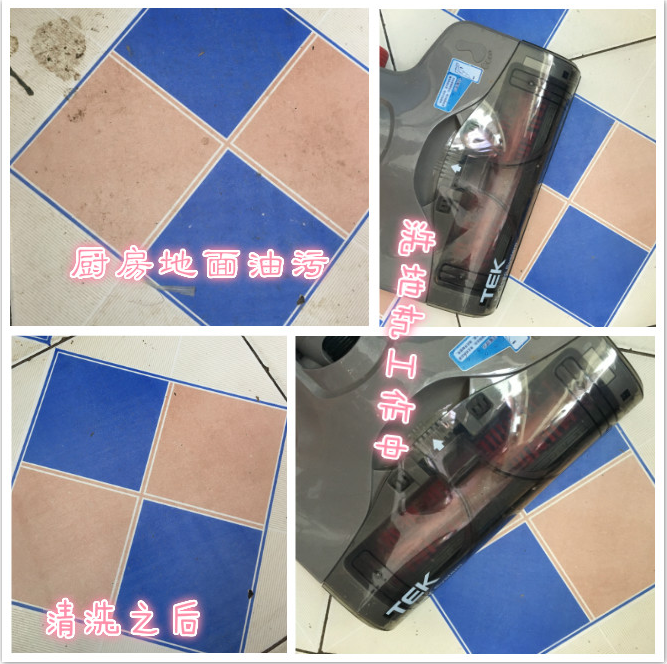 作为麻麻,可能最头疼的还有厨房的地面,因为油渍太多,每次都要拖上好几遍,所以平时最心塞的就是厨房地板的清洁。而我特意做了一个测试,TEK地面清洗机轻轻松松就可以把地面扫干净,省时省力又省心啊,家里来了亲戚,他们都要给亲戚介绍一下呢。